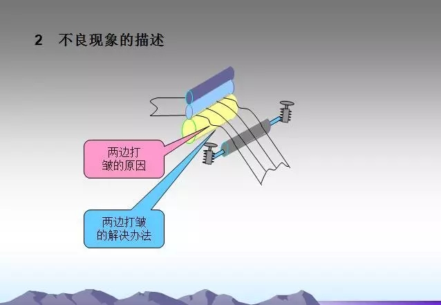 輥緊固螺釘松動原因造成各輥的平行狀態(tài)被破壞,此時會出現(xiàn)打皺現(xiàn)象。這種情況下,只要及時調(diào)整并緊固好即可。